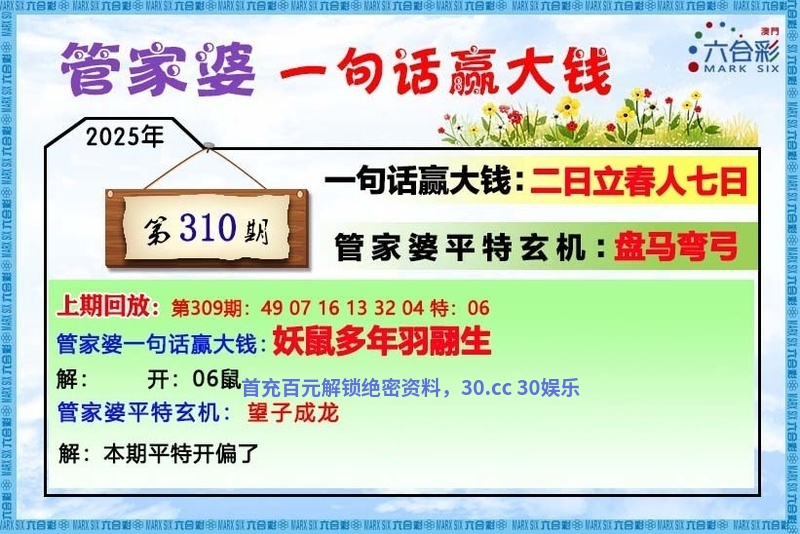 309期:管家婆一句话:【妖鼠多年羽翮生】